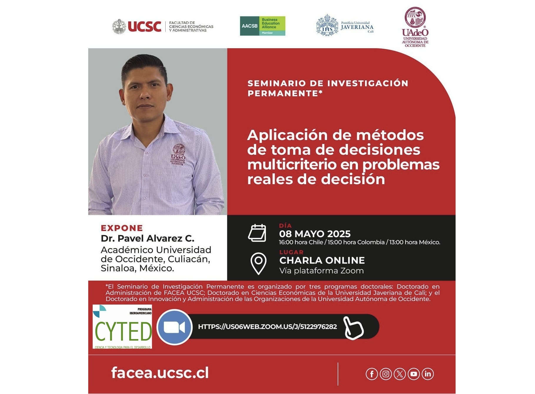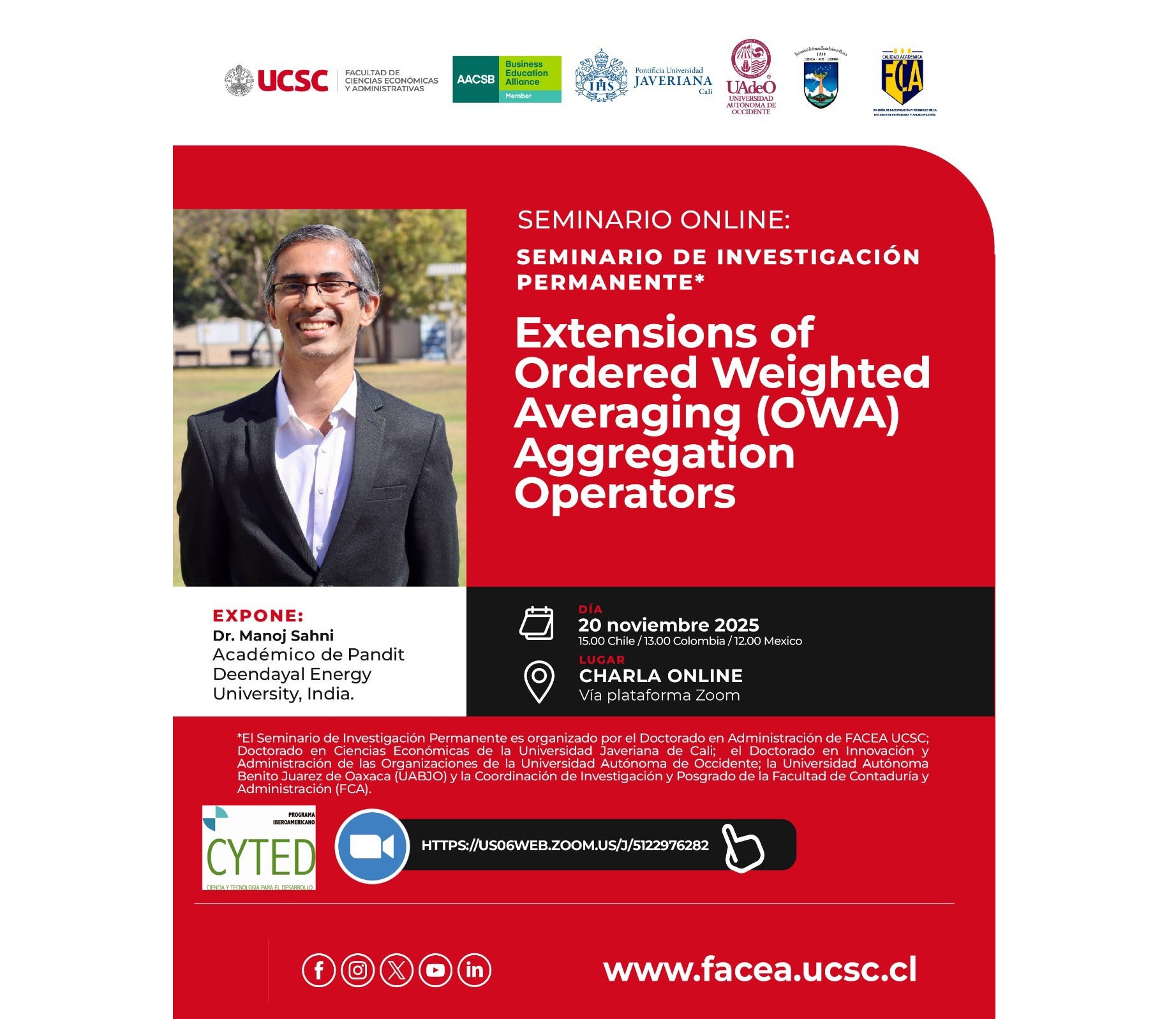 El 20 de noviembre de 2025 se impartió el Seminario Internacional SIEMCI titulado "Extensions of Ordered Weighted Averaging (OWA) Aggregation Operators" Impartido por el Dr. Manoj Sahni, donde se deba