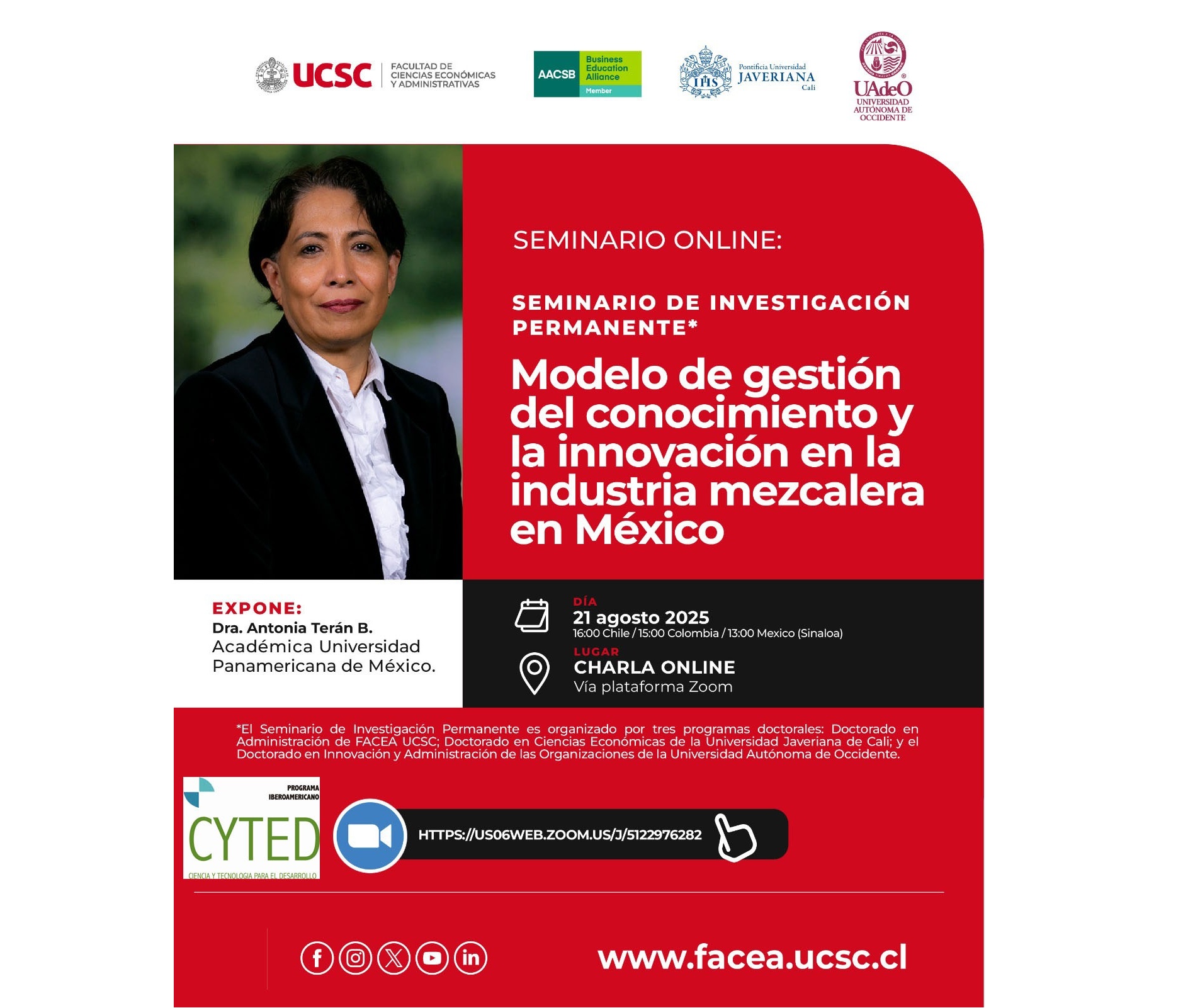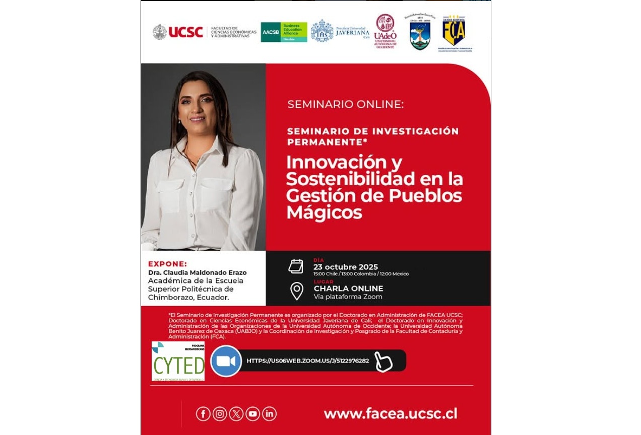 El 23 de octubre de 2025 se impartió el Seminario Internacional SIEMCI titulado "Innovación y Sostenibilidad en la Gestión de Pueblos Mágicos" Impartido por la Dra. Claudia Maldonado Erazo, un estudio
