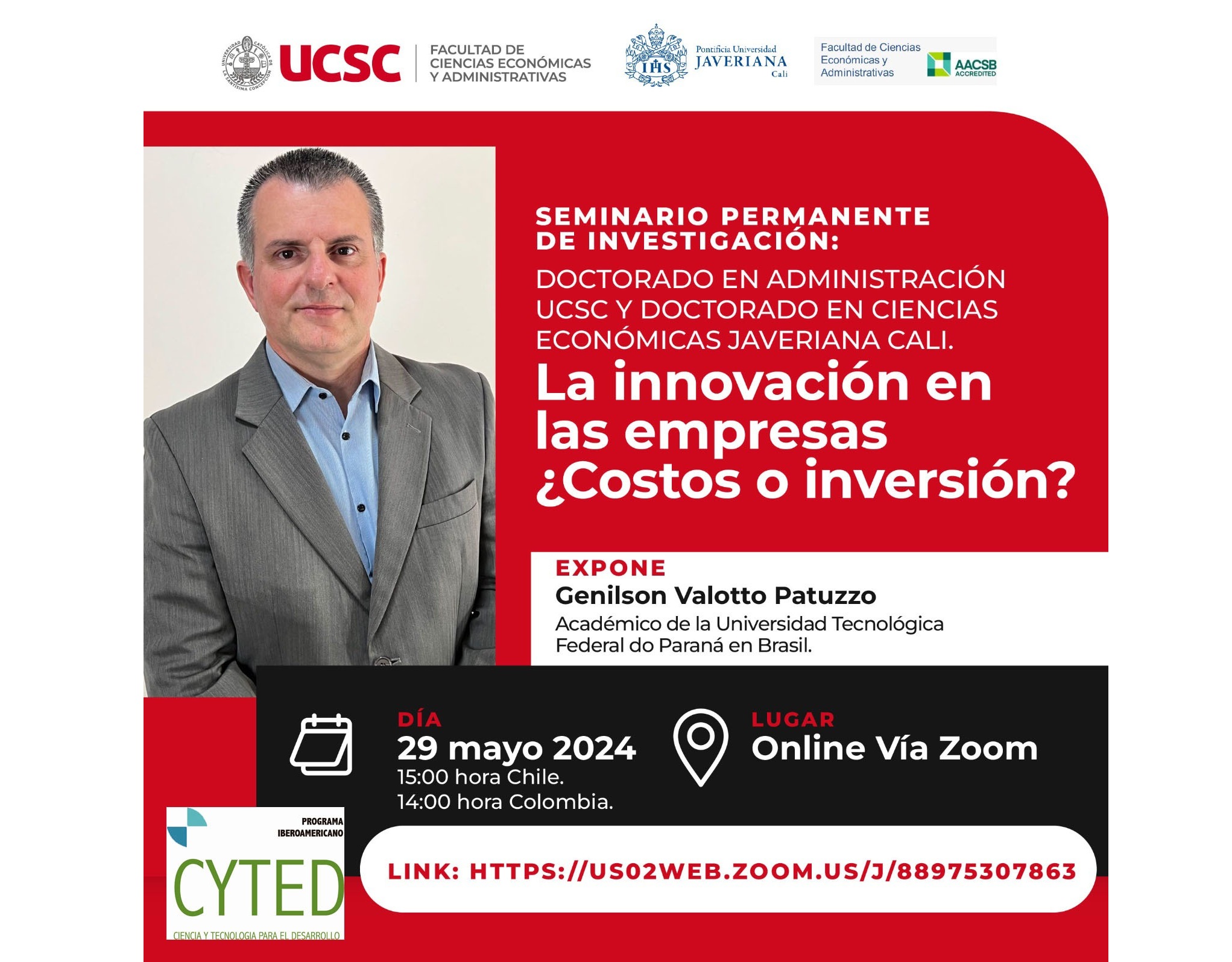 Se comunica e invita a la comunidad científica académica de la UFES, para asistir a este seminario.