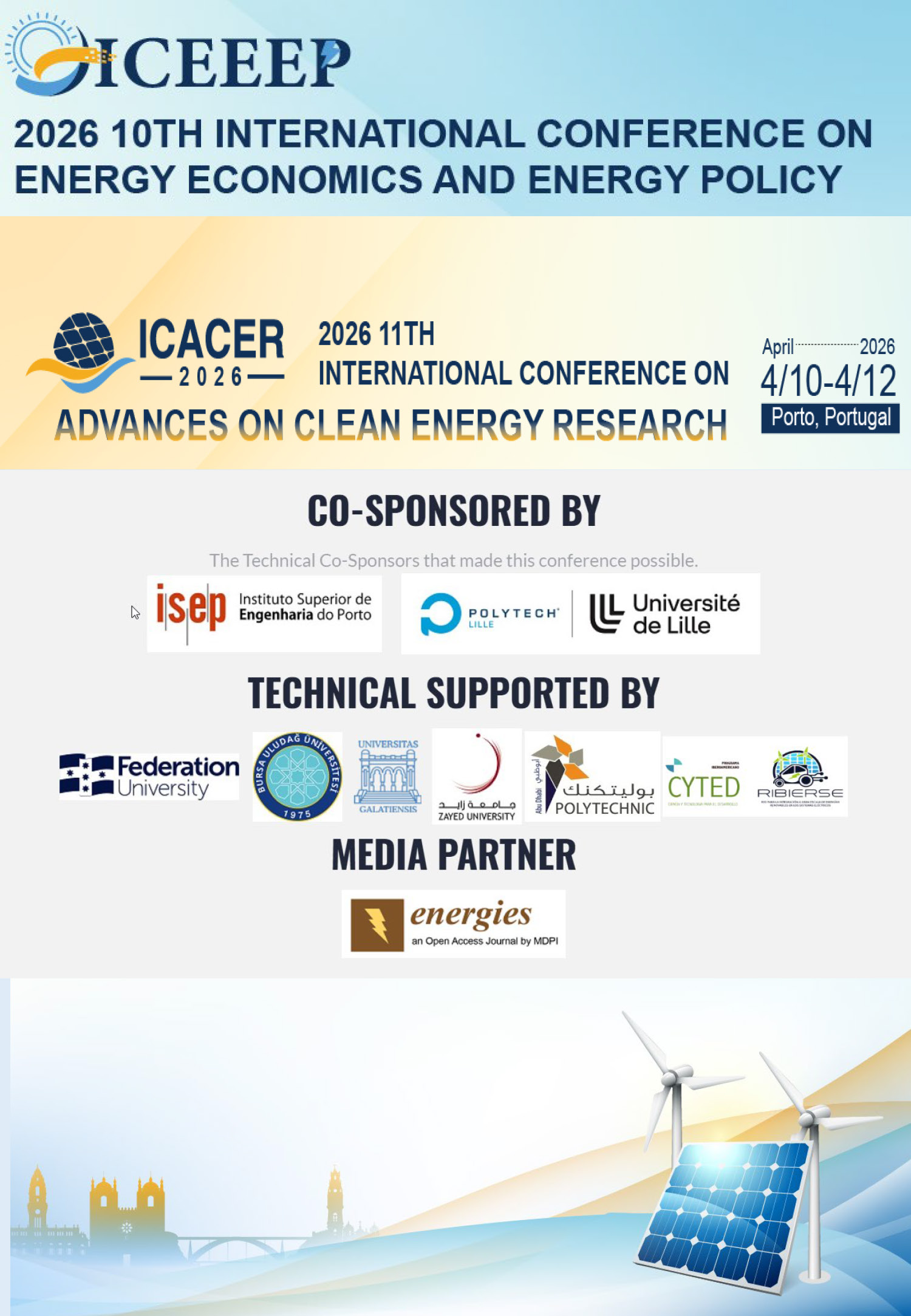 The objectives of ICACER 2026 are to provide a forum to bring together researchers, scientists, engineers, academics and graduate students in the fields of advances on clean energy research, energy ec