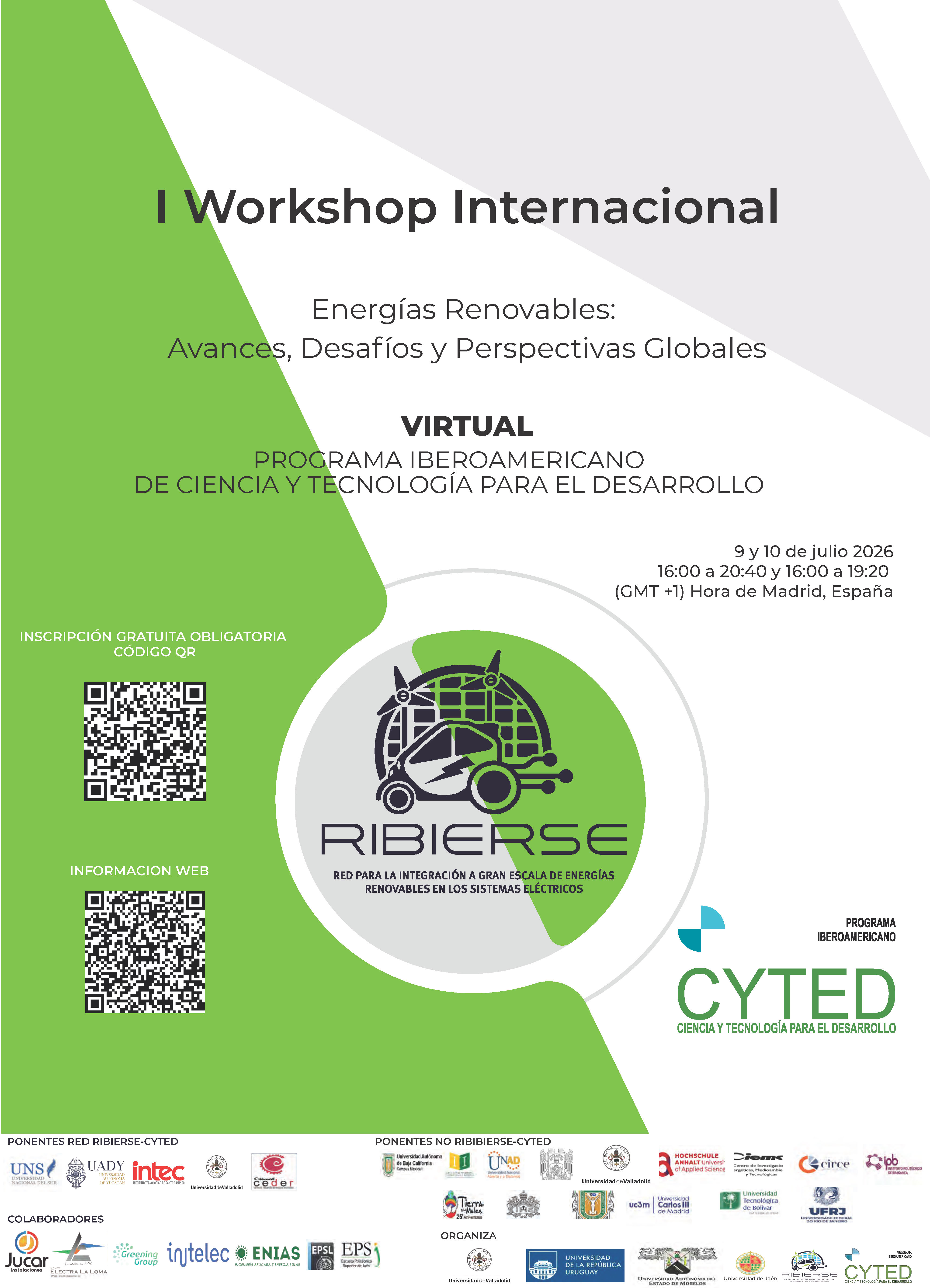 La red RIBIERSE-CYTED organiza el I Workshop Internacional sobre Energías Renovables: Avances, Desafíos y Perspectivas Globales que se va a celebrar el