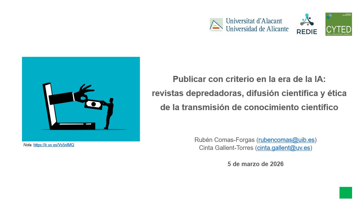 Curso impartido por Rubén Comas-Forgas (Universitat de les Illes Balears, REDIE, CYTED) y Cinta Gallent-Torres (Universitat de València, REDIE, CYTED), dirigido a estudiantes de doctorado de la Facult
