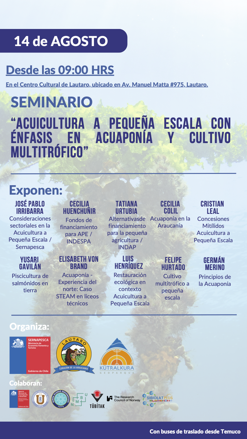 Los invitamos a participar en el Seminario "Acuicultura de Pequeña Escala (APE), con énfasis en Acuaponía y Cultivo Multiflórico" que se enfocará en el desarrollo sostenible de la producción acuícola