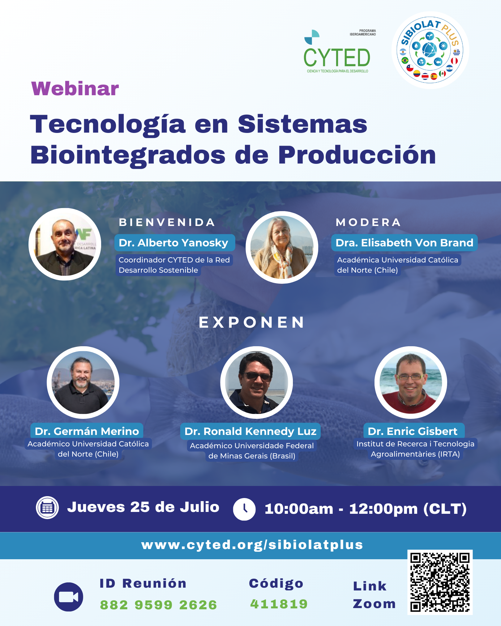 Te invitamos este 25 de julio a las 10:00 am horario chile, a acompañarnos en el webinar Tecnología en Sistemas Biointegrados de Producción, organizado por SIBIOLATPLUS - Red latinoamericana de bioint