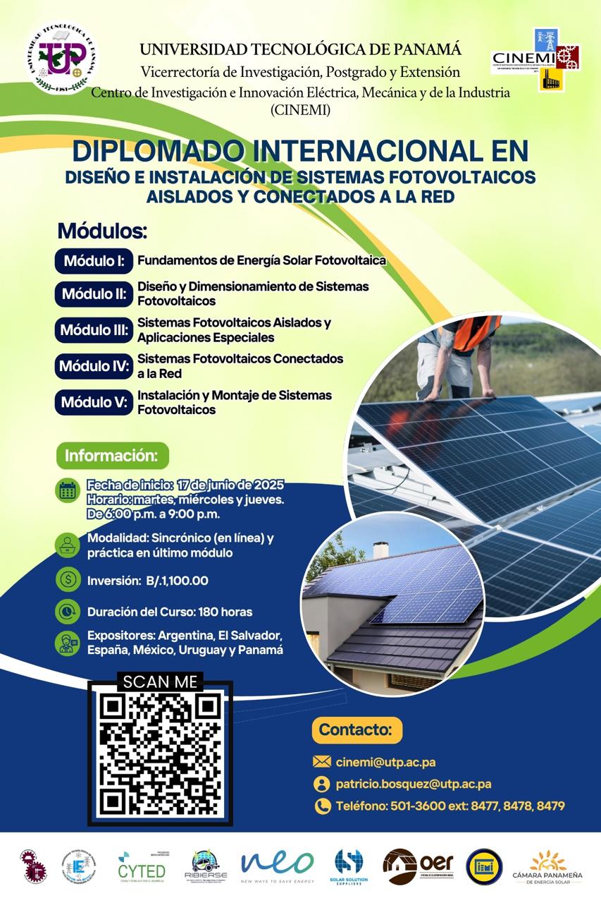 La UNIVERSIDAD TECNOLÓGICA DE PANAMÁ, Vicerrectoría de Investigación, Postgrado y Extensión y el Centro de Investigación e Innovación Eléctrica, Mecánica y de la Industria (CINEMI) organizan este Dipl