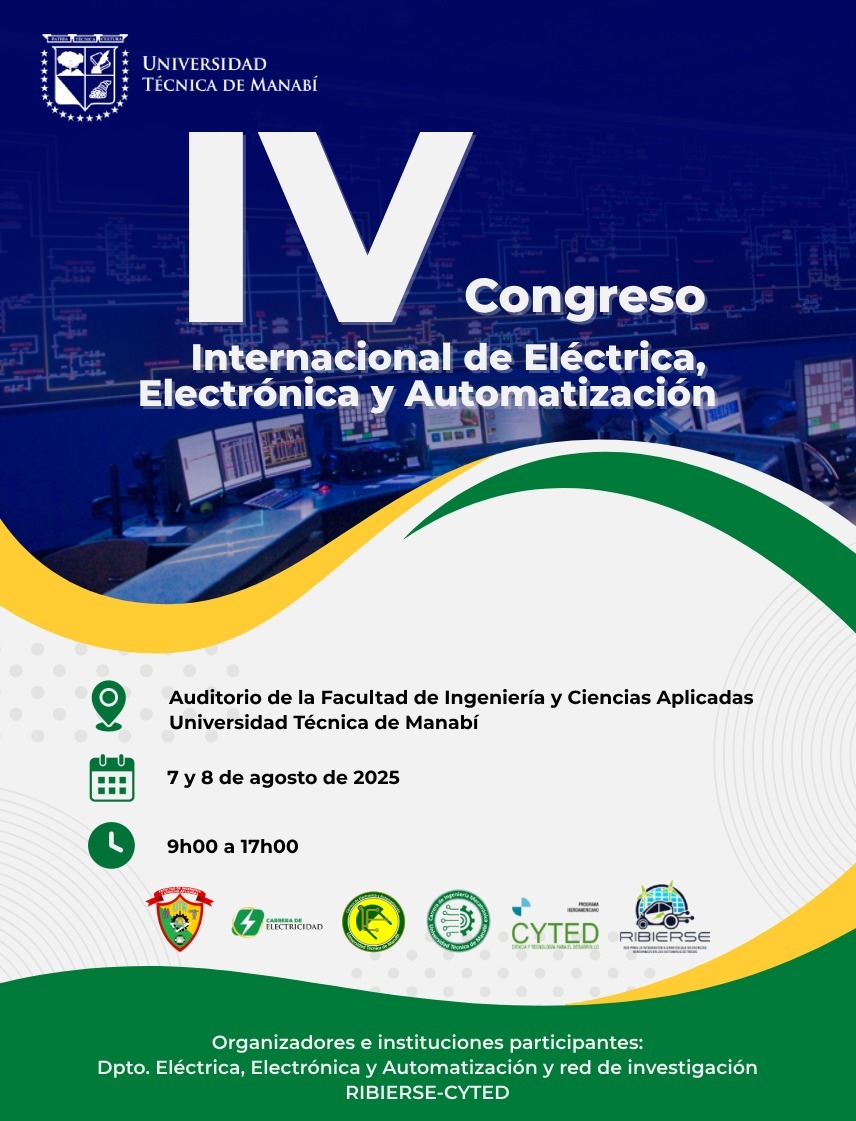 La Universidad Técnica de Manabí de Ecuador organiza el II CONGRESO INTERNACIONAL DE INGENIERÍA ELÉCTRICA: Eficiencia energética y Fuentes renovables de energía los días 6 y 7 de julio del 2023 en