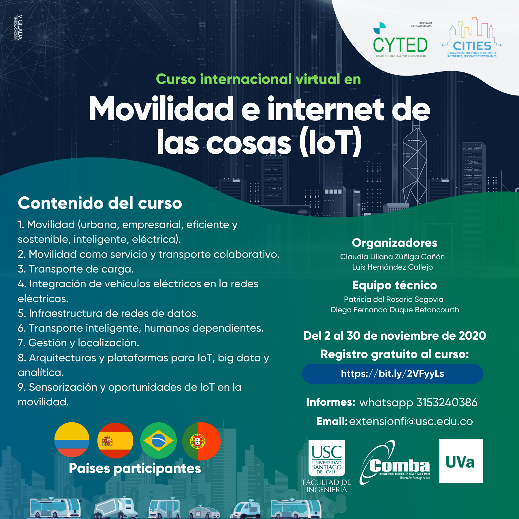 El curso está enmarcado dentro de una actividad de la Red Temática CITIES (Ciudades Inteligentes Totalmente Integrales, Eficientes y Sostenibles). CITIES es una iniciativa promovida y financiada por l