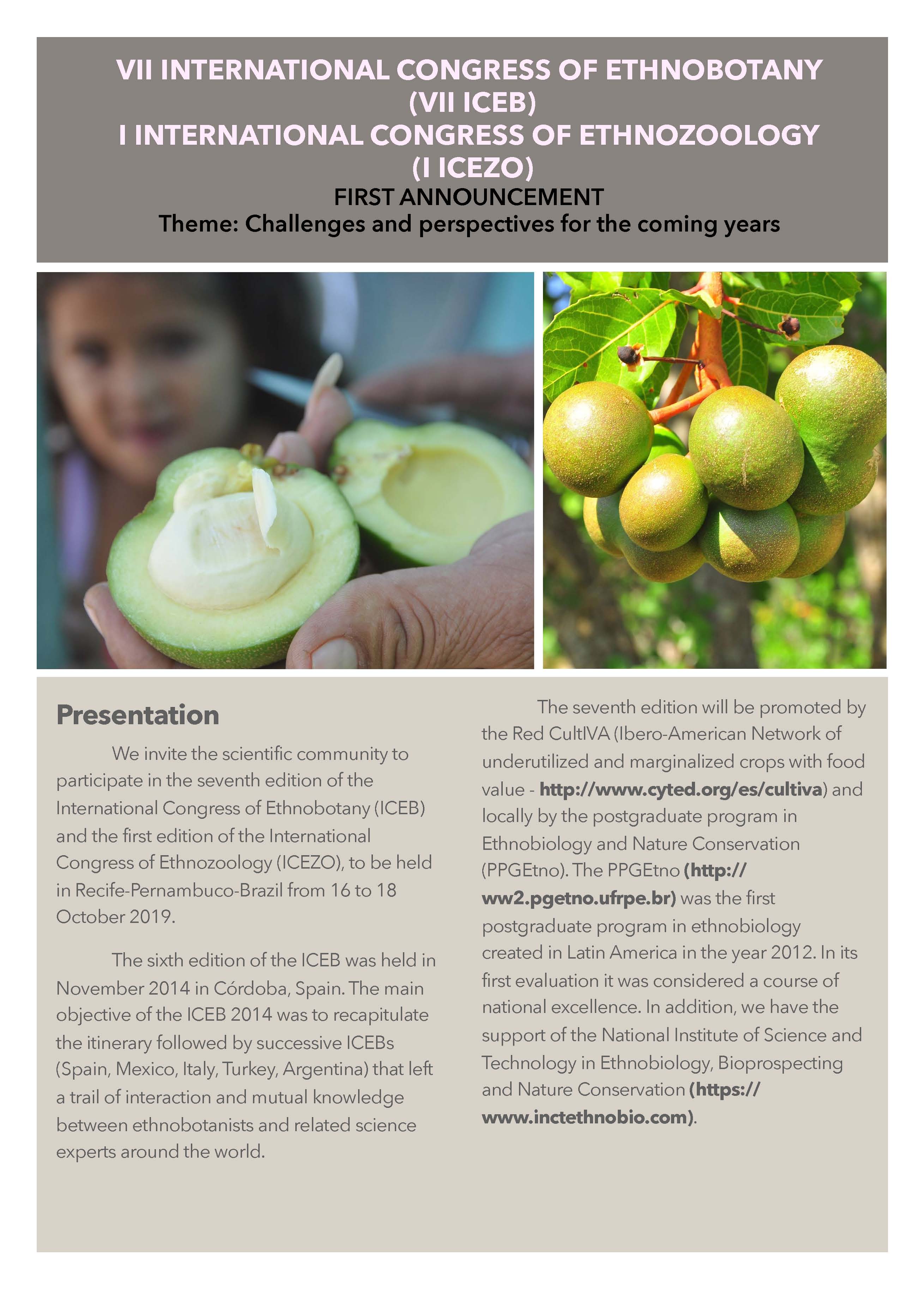 The objetives of the VII ICEB and the I ICEZO are to create opportunities for international debate and exchange of experiences on the use and conservation of natural resources, as well as to facilitat