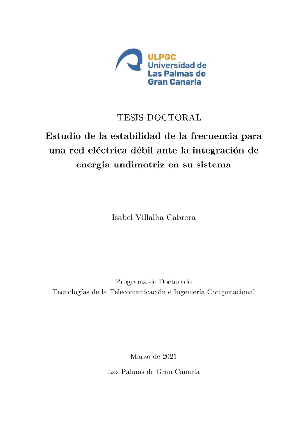 En marzo de 2021 se ha depositado y defendido la tesis doctoral de Isabel Villalba Cabrera, titulada “Estudio de la estabilidad de la frecuencia para una red eléctrica débil ante la integración de ene