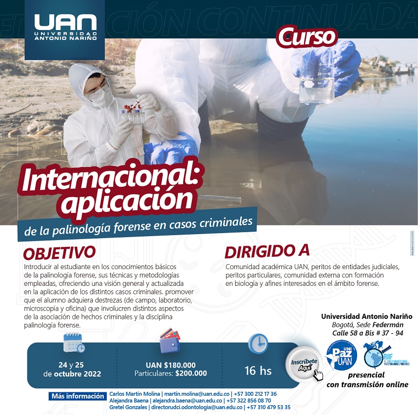 El objetivo del curso es introducir al estudiante en los conocimientos básicos de la Palinología forense, sus técnicas y metodologías, ofreciendo una visión general y actualizada de la aplicación en l