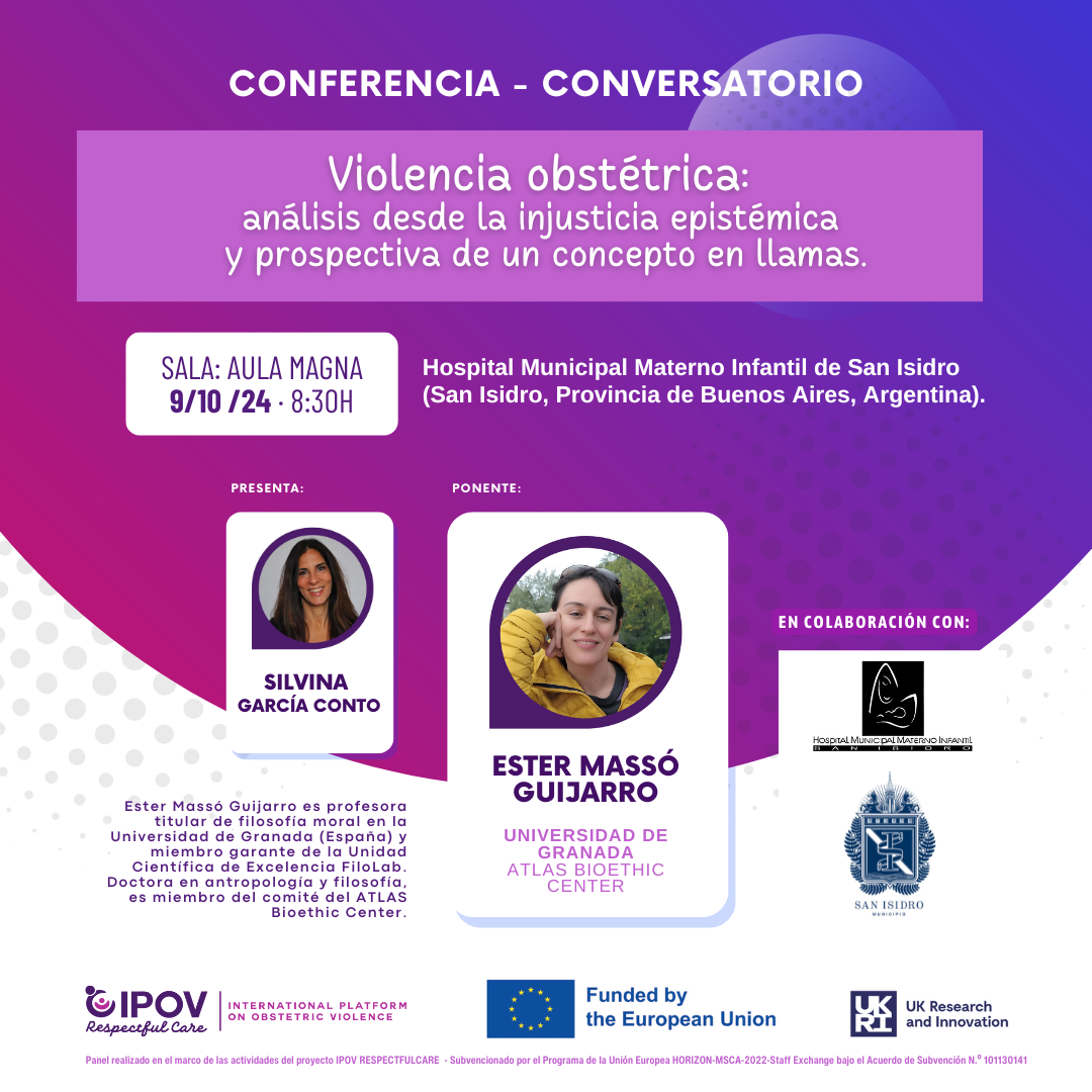 Ester Massó Guijarro, investigadora garante de la Unidad Científica de Excelencia FiloLab, miembro de ESPACyOS y LIBERESP, impartió la Conferencia "VIOLENCIA OBSTÉTRICA: análisis desde la injusticia e