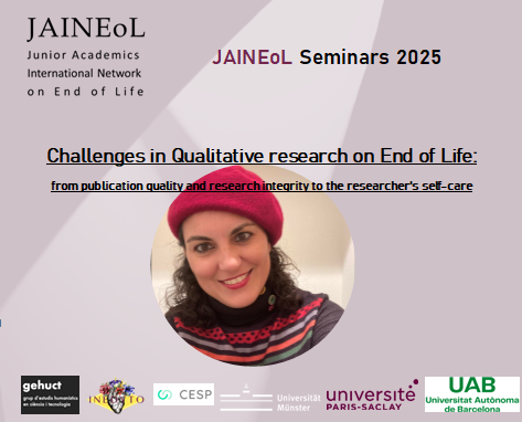 Se invita a este seminario organizado por JAINEOL, la red internacional de jóvenes investigadores en final de vida (fundada por Iris Parra Jounou, Pia Dittke y Perrine Galmiche).