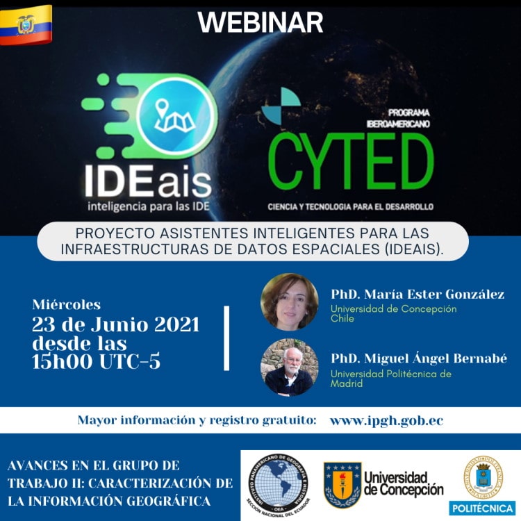 El Instituto Panamericano de Geografía e Historia (IPGH) colabora en la organización y difusión de los seminarios online de la red IDEAIS. Ver la publicación del IPGH en https://eventos.ipgh.gob.ec/in