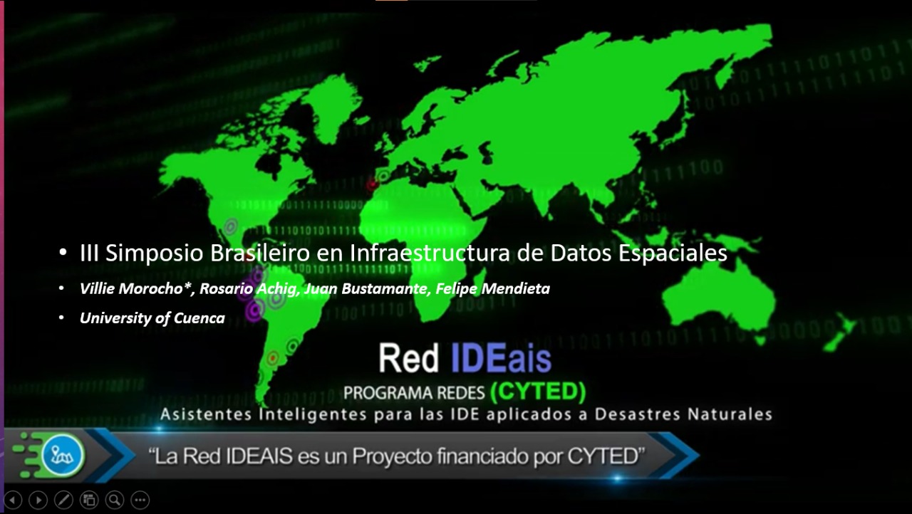 La red IDEAIS organiza una mesa redonda en el III Simposio Brasileño en Infraestructura de Datos Espaciales. En la misma participaron: Carlos Villie Morocho Zurita (Universidad de Cuenca - EC), Paloma